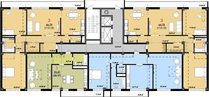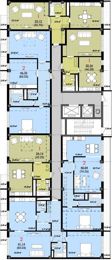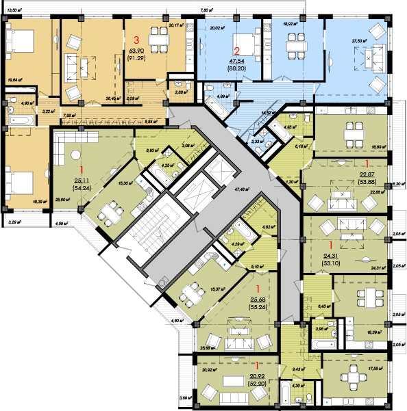 | Жилой комплекс предлагает квартиры различных форматов — от уютных однокомнатных до просторных четырехкомнатных апартаментов: |