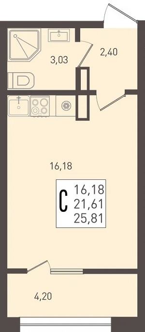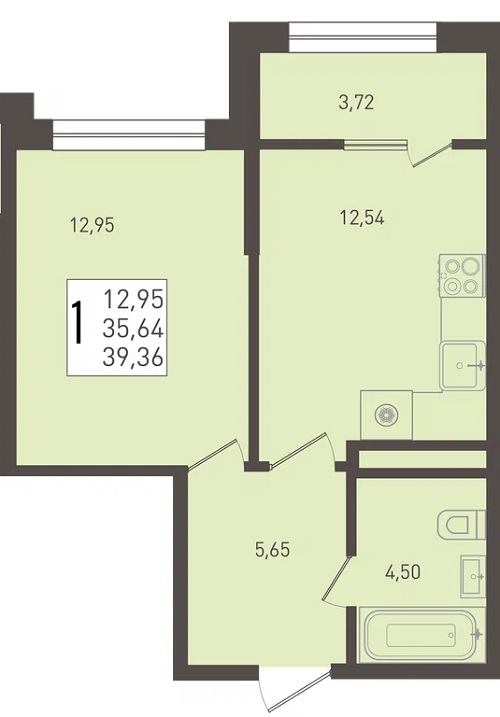 1-комнатная 38–42 Кухня-гостиная, раздельный санузел (в большинстве вариантов).