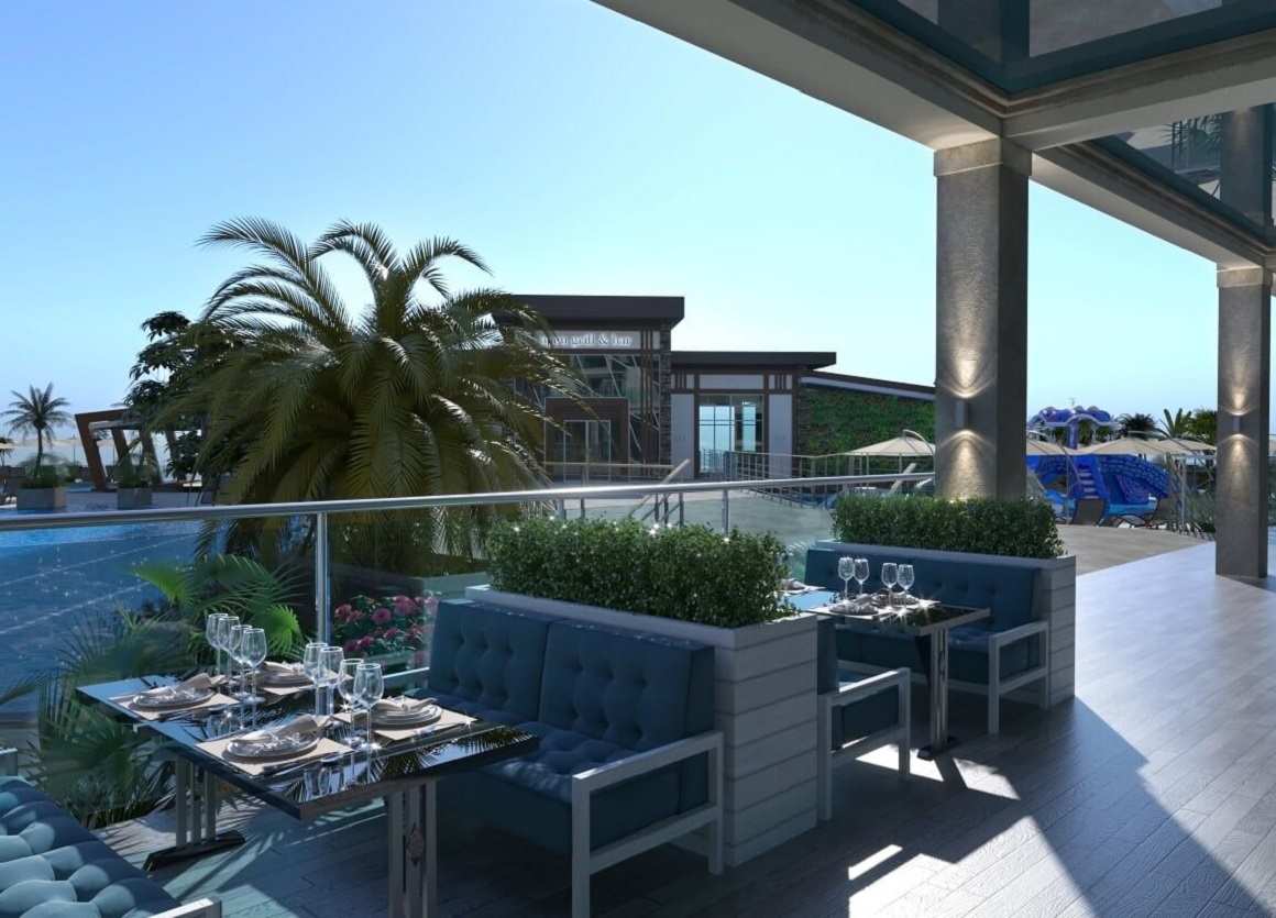| Внутренняя инфраструктура поселка включает услуги room-сервиса: доставку еды и продуктов, заказ трансфера из аэропорта, химчистку, прачечную, уборку и т.д. На территории комплекса строится один крытый и четыре открытых бассейна, ресторан с летней террасой и панорамными видами на море, спорткомплекс с фитнес-клубами и игровыми площадками, SPA-центр и четыре теннисных корта. Планируется открытие супермаркета и аптеки, а на пляже – детского бассейна и кафе. |
