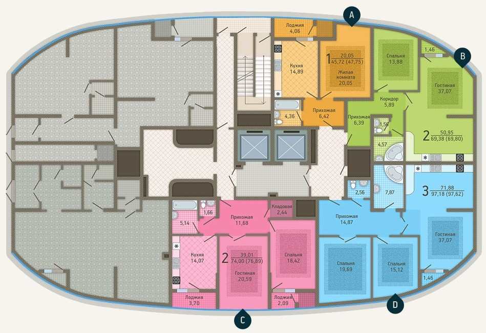 5 ЖК АДМИРАЛ ПЛАНИРОВКИ КВАРТИР. 22 ЭТАЖ.