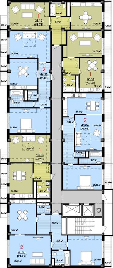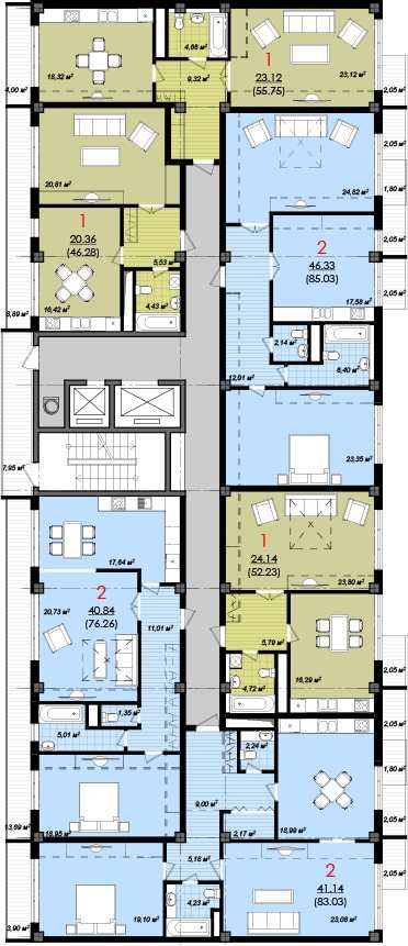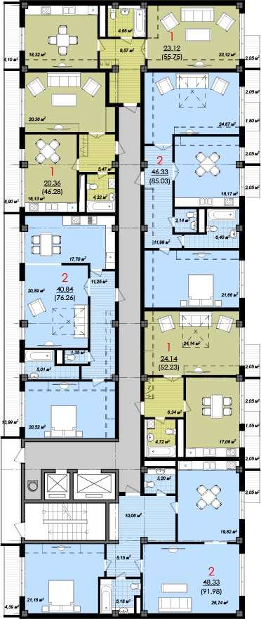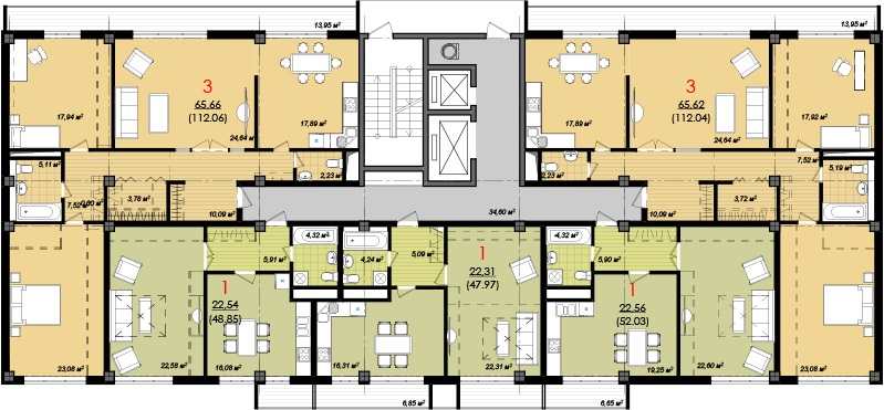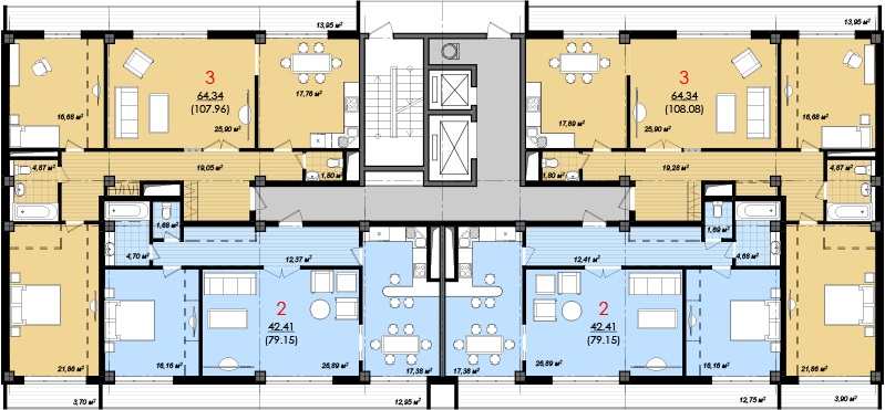 | Жилой комплекс предлагает квартиры различных форматов — от уютных однокомнатных до просторных четырехкомнатных апартаментов: |