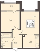1-комнатная 38–42 Кухня-гостиная, раздельный санузел (в большинстве вариантов).