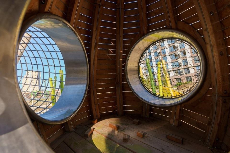 | Концепция «двор без машин» реализована полностью: гостевые парковки вынесены за периметр, а внутри — только пешеходные зоны, детские площадки с безопасным резиновым покрытием, зоны для воркаута и скамейки в тени деревьев. |