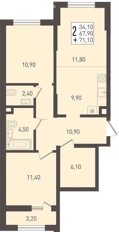 3-комнатная 78–87 Удобная планировка для семьи с детьми, возможность выделить кабинет. |